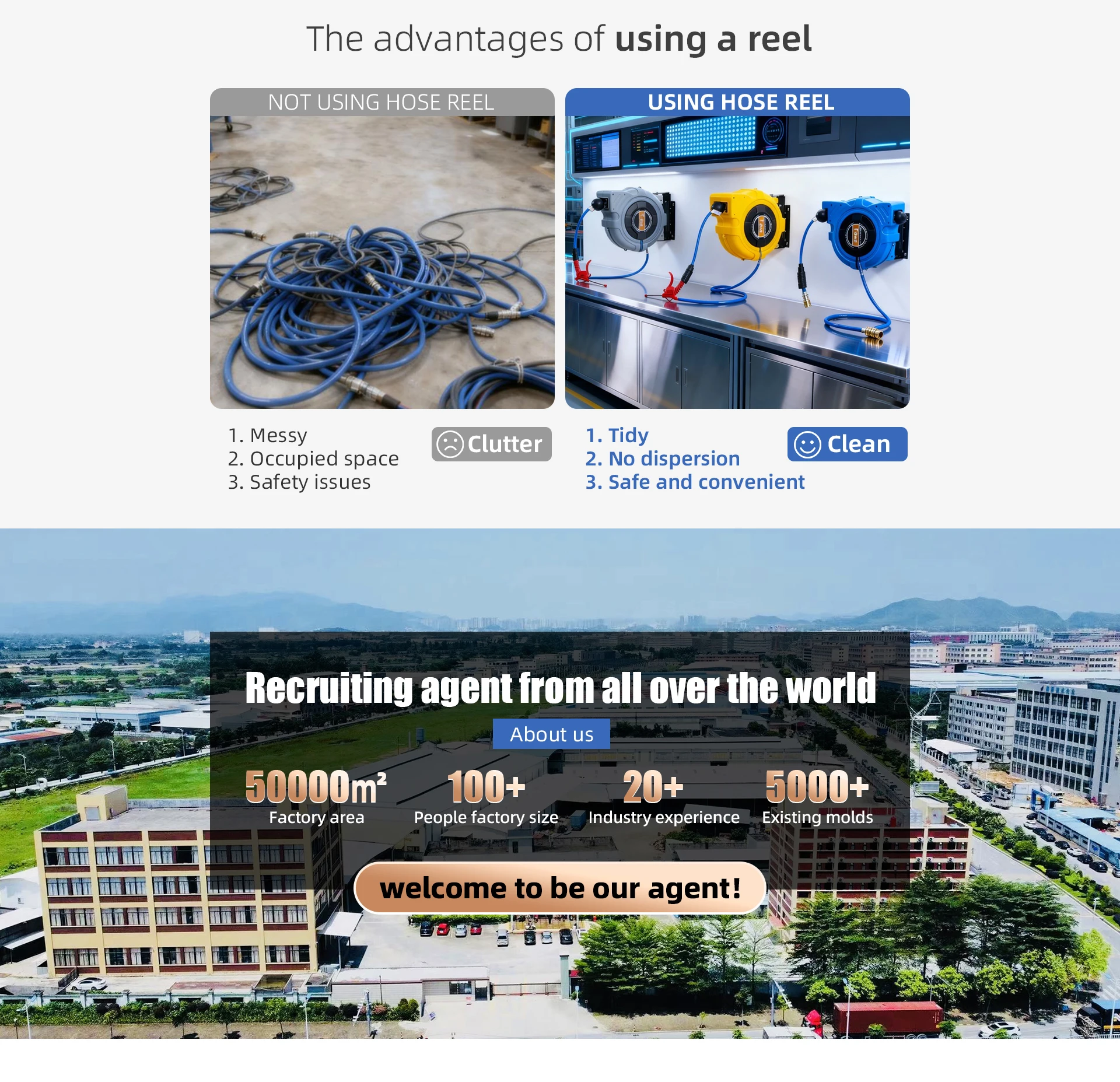 Belangrijkste producten:Automatische slanghaspel, barrières, tekenframe, steunen
